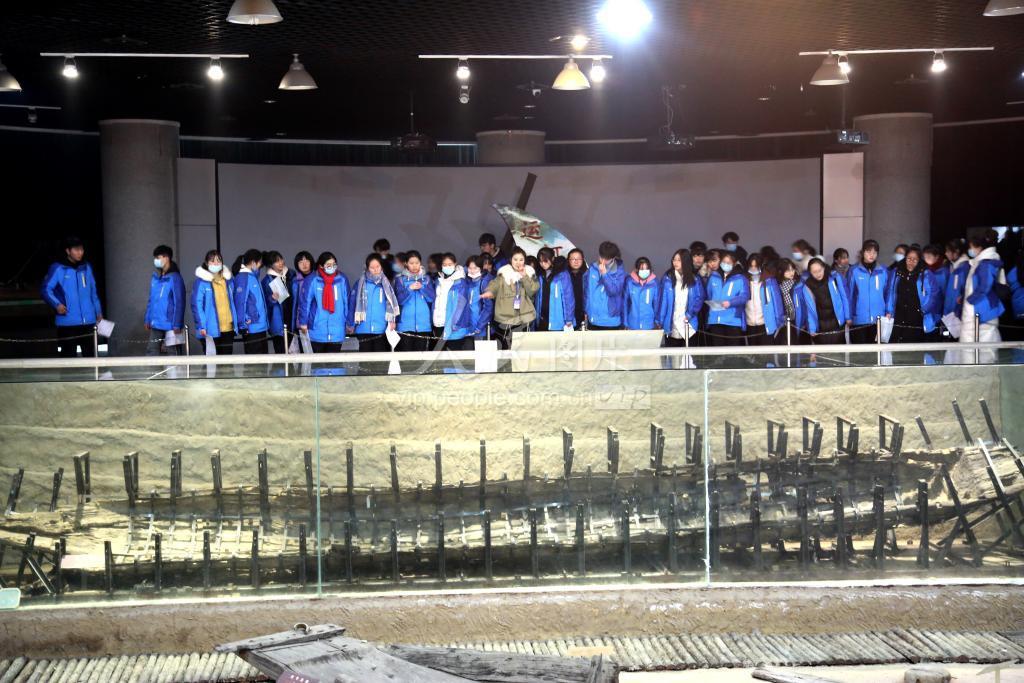 2020年12月12日,安徽省淮北市实验高级中学“微心赏”教研组教师带领学生走进中国隋唐大运河博物馆,开展美术课现场教学活动。学生参观古沉船。