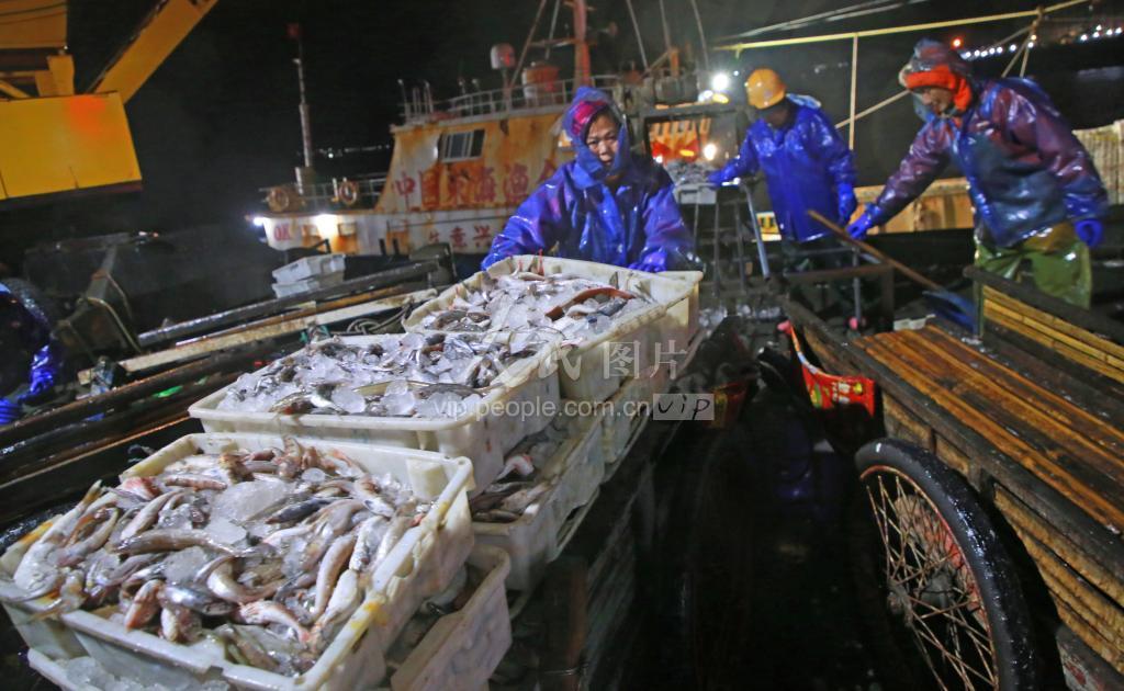 2020年12月14日夜晚, 受强冷空气袭击,浙江台州多地气象部门发布了大风红色预警,远洋海面风力达10级,大量渔船停止生产,纷纷进港避风。 在浙江玉环鹰东码头,渔民们顶风雨忙着卸下船上带回的货品,渔港市场里交易忙。渔业是玉环经济的重要支柱产业。冬汛是渔业生产的大好时节,渔民们表示,等到强冷空气结束后,他们将马上返回洋面作业。