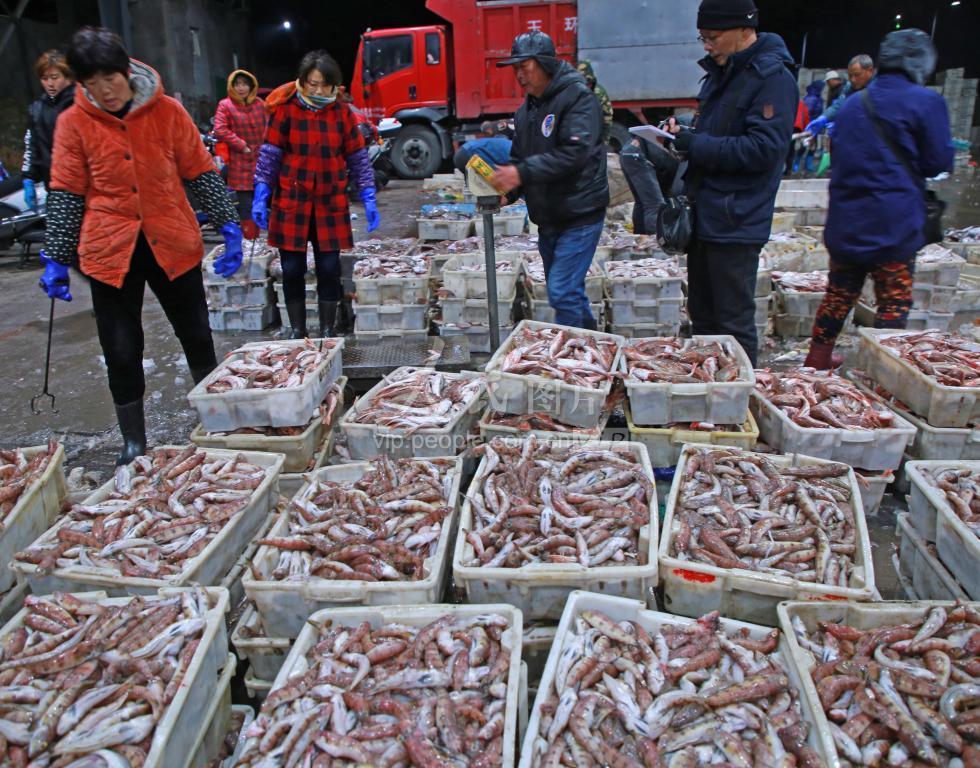 2020年12月14日夜晚, 受强冷空气袭击,浙江台州多地气象部门发布了大风红色预警,远洋海面风力达10级,大量渔船停止生产,纷纷进港避风。 在浙江玉环鹰东码头,渔民们顶风雨忙着卸下船上带回的货品,渔港市场里交易忙。渔业是玉环经济的重要支柱产业。冬汛是渔业生产的大好时节,渔民们表示,等到强冷空气结束后,他们将马上返回洋面作业。