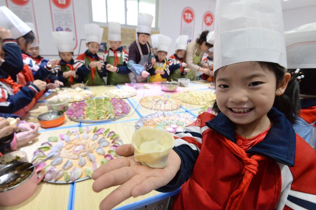 2020年12月18日,河北省邯郸市邯山区滏河学校开展“饺子飘香迎冬至”活动,师生将面里添加胡萝卜汁和菠菜汁等,大家一边包彩色饺子,一边讲冬至的故事,感受中国传统民俗文化。