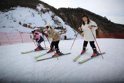 上传时间: 2021-01-03 16:17:46 图片说明: 1月3日,游客在河北省唐山市迁西县龙井关景区滑雪场滑雪。