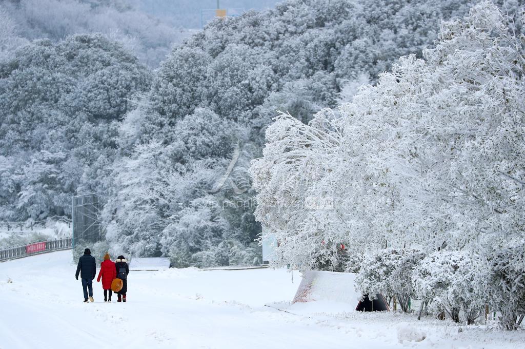 2021年1月8日,市民在冰清玉洁的四川省广安市华蓥山赏雪。