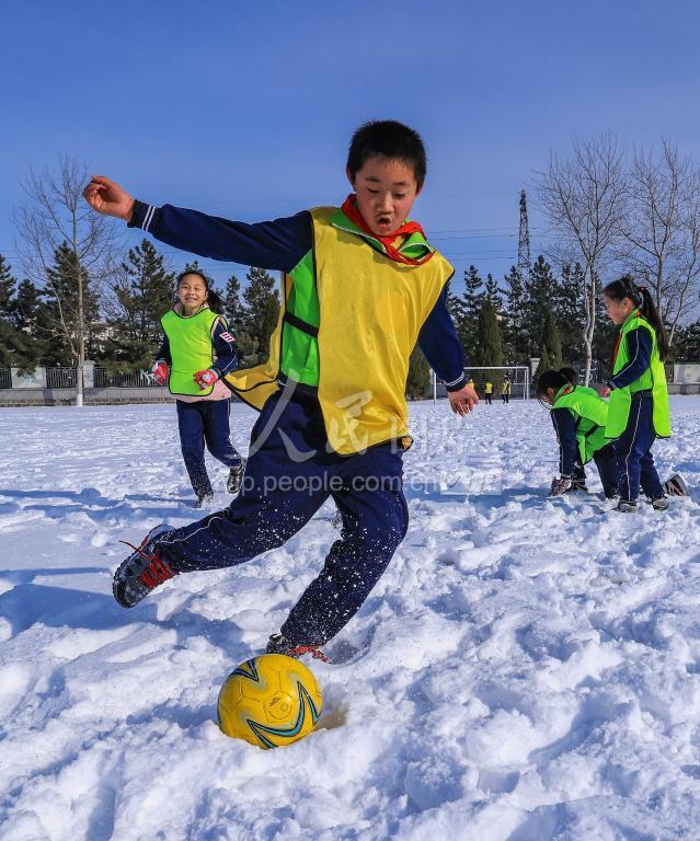 连日来,山东荣成迎来强降雪天气,皑皑白雪也给孩子们带来了不少雪趣。2021年1月11日,山东荣成蜊江小学的孩子们在雪地上进行足球比赛,乐享冬日体育运动。