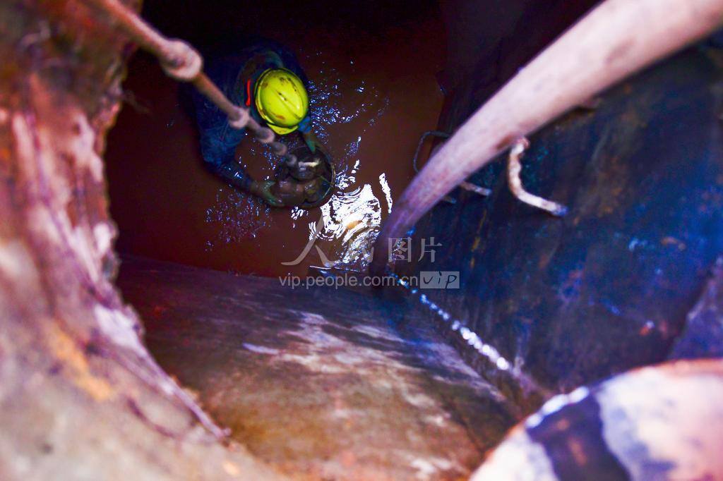 2021年1月12日,在江西省赣州市章贡区瑞金路,工作人员对地下雨污管网进行疏通作业。