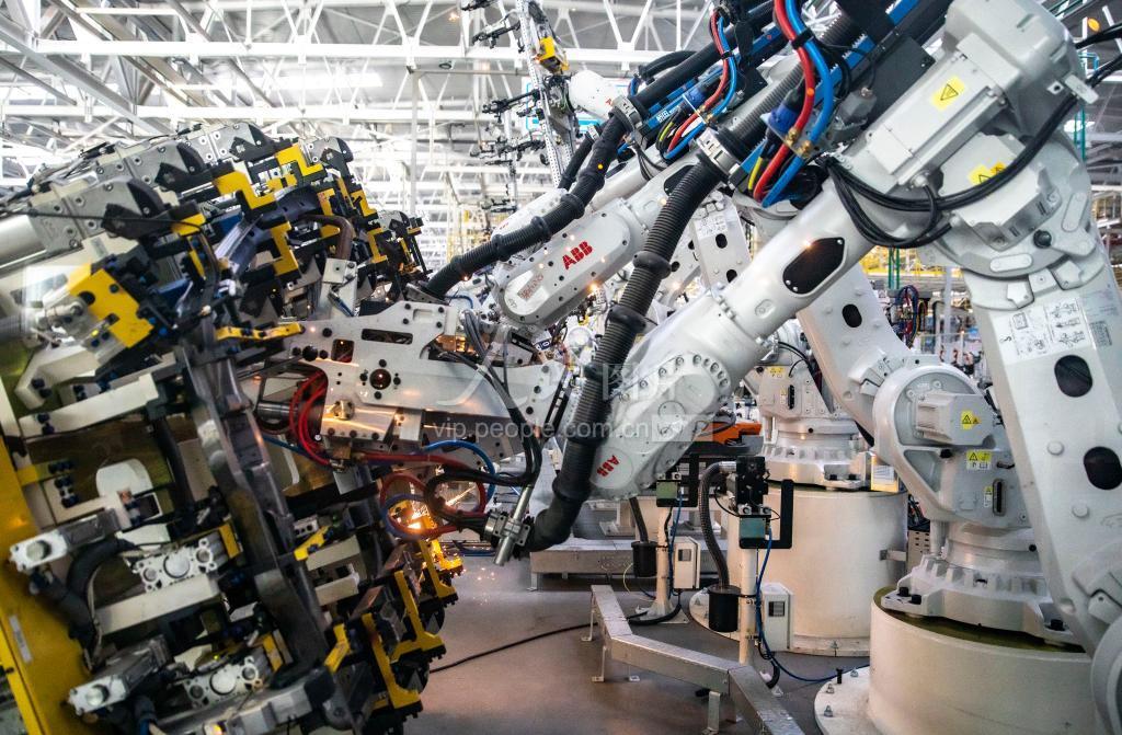 1月14日,山西省运城市大运新能源汽车生产基地机器人正在工作。
