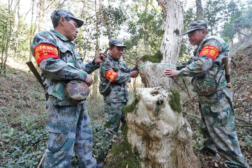 2021年1月14日,在浙江省湖州市德清县莫干山镇筏头村省级公益林管护区,村级林长在山林间巡护。2018年以来,德清县积极践行绿水青山就是金山银山的理念,全面实施县、镇、村三级林长制,整合生态公益林护林员、森林防火巡查员、林业有害生物监测员“三员合一”为林长,形成“山有人管、林有人护、火有人防、责有人担”的森林资源管护新格局,实现了生态改善和绿色发展“双赢”。