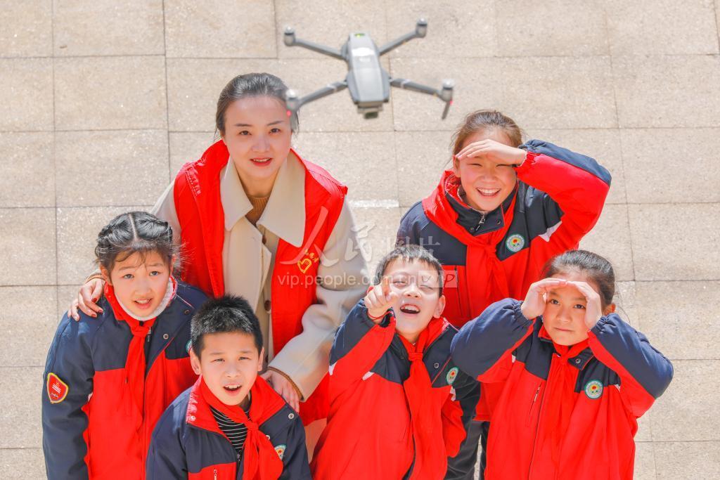 2021年1月14日,在浙江省湖州市南浔区和孚村泉生小学,科普志愿者在给小朋友讲解航拍无人机知识。