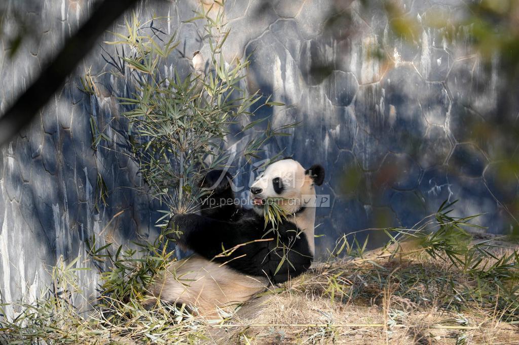 2021年1月14日,安徽黄山市大熊猫生态乐园,大熊猫“华龙”正在吃竹子。 近日,天气晴好,安徽省黄山市大熊猫生态乐园里憨态可掬的大熊猫来到室外,或玩耍小憩、或尽情进食、或悠闲散步,畅享冬日暖阳。