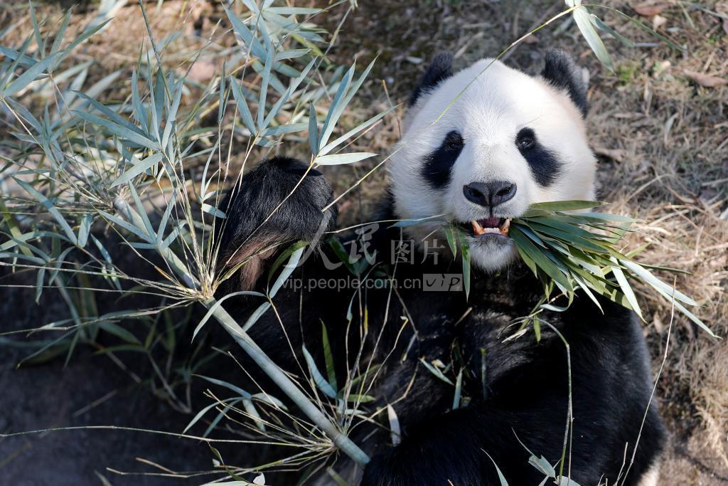 2021年1月14日,安徽黄山市大熊猫生态乐园,大熊猫“华龙”正在吃竹子。 近日,天气晴好,安徽省黄山市大熊猫生态乐园里憨态可掬的大熊猫来到室外,或玩耍小憩、或尽情进食、或悠闲散步,畅享冬日暖阳。