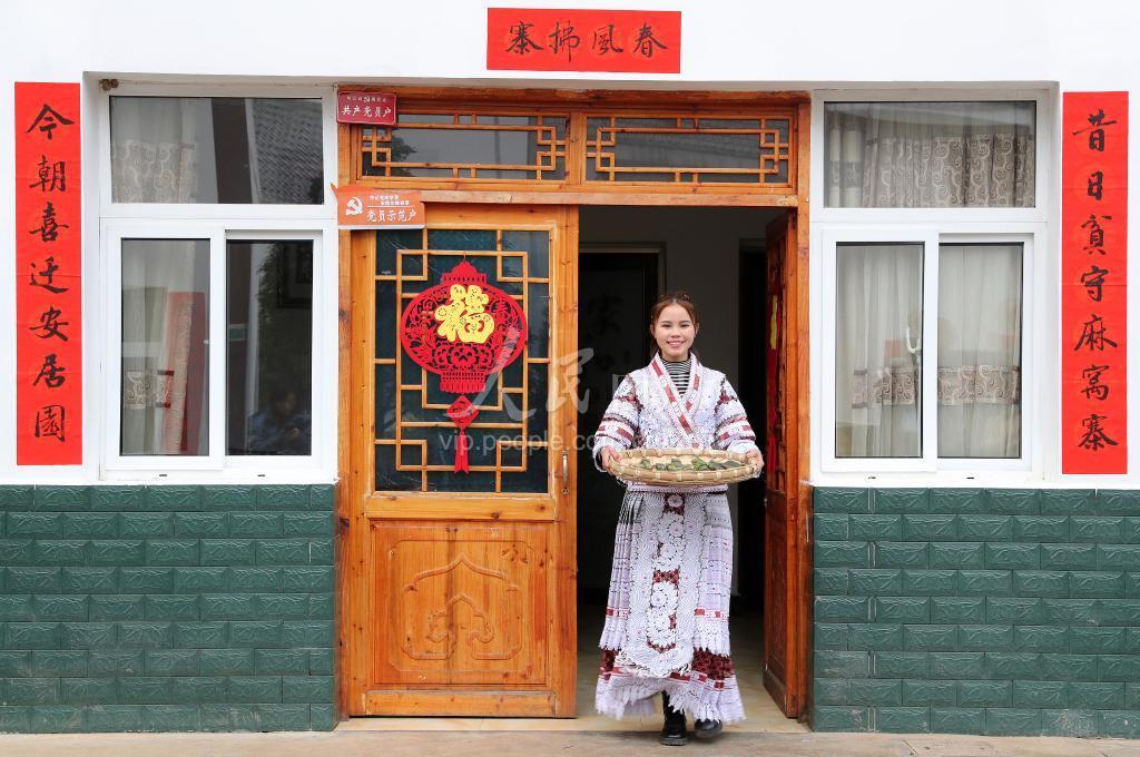 2021年2月4日,贵州省毕节市黔西县新仁苗族乡化屋村易地扶贫搬迁安置点,村民包粽子迎新春。