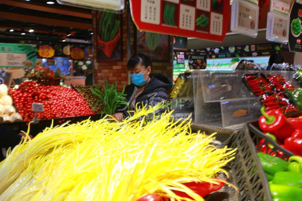 2021年2月10日,消费者在山东省临沂市平邑县一家超市选购蔬菜。