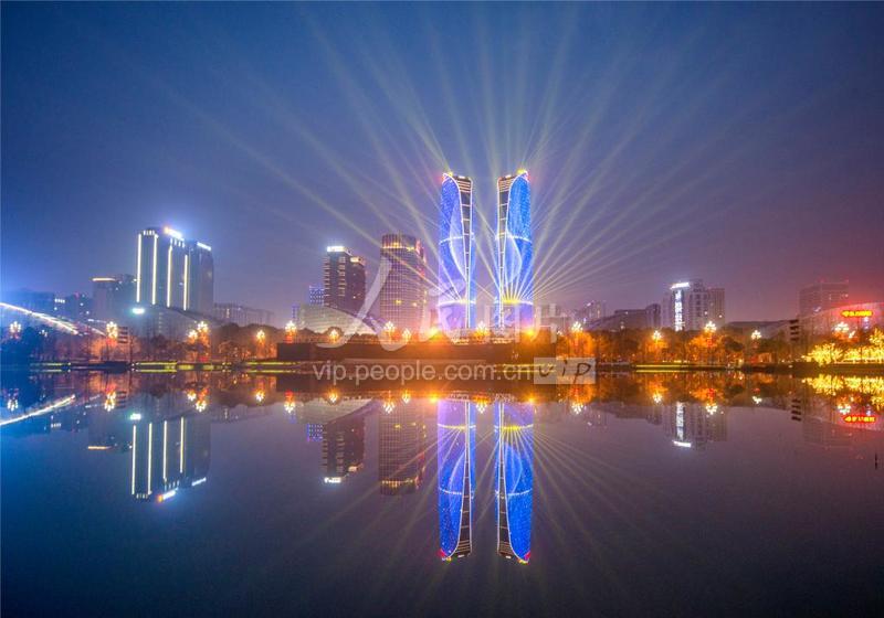 四川成都:金融城双子塔美丽灯光映蓉城