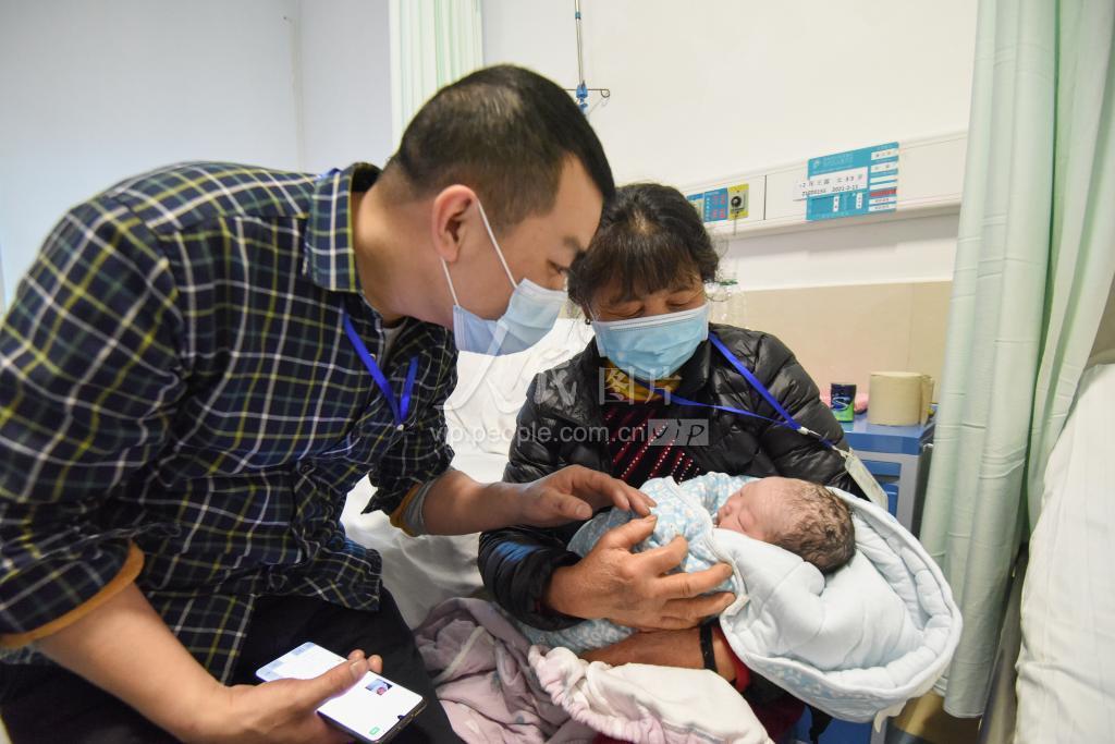 2021年2月11日,农历庚子鼠年除夕夜,在湖北省荆州市妇幼保健院的产科病房,“跨年宝宝”豆豆的爸爸和奶奶在照料。