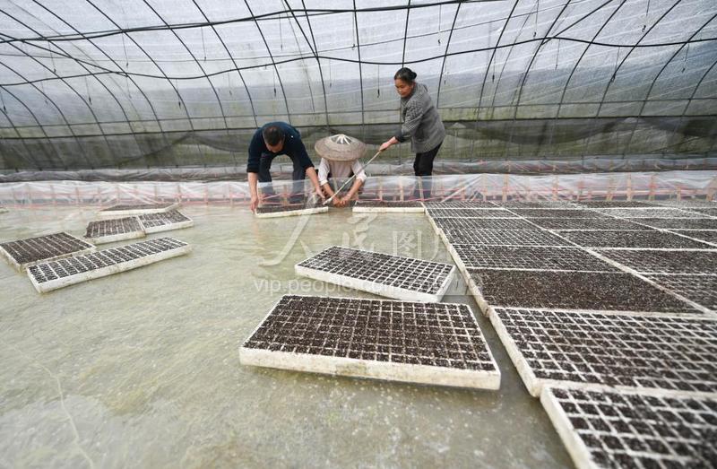 时下,贵州省铜仁市松桃苗族自治县的人们抢抓春播春种农忙时节,在大棚内育苗、管护幼苗,一片繁忙。