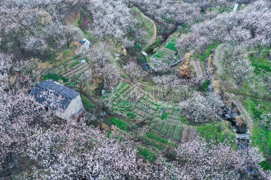 2021年2月23日,浙江省余姚市四明山镇悬岩村的樱桃花盛开,美丽如画。
