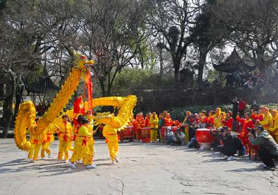 2021年2月24日,来自苏州市区、吴江、昆山、常熟等地的10支舞龙队,在江苏省苏州市虎丘景区举行展演活动,用精彩的表演迎接即将到来的元宵佳节,给游客带来欢乐喜庆的节日气氛。