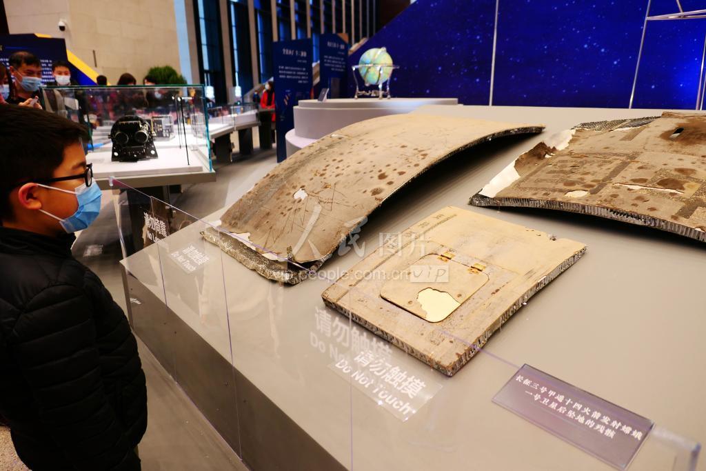 2021年2月27日,北京,“月球样品001号•见证中华飞天梦” 展览在国家博物馆开幕。嫦娥五号从月球带回的“土特产”——月球样品与公众见面,探月工程相关科技实物40余件一同在展览中亮相。