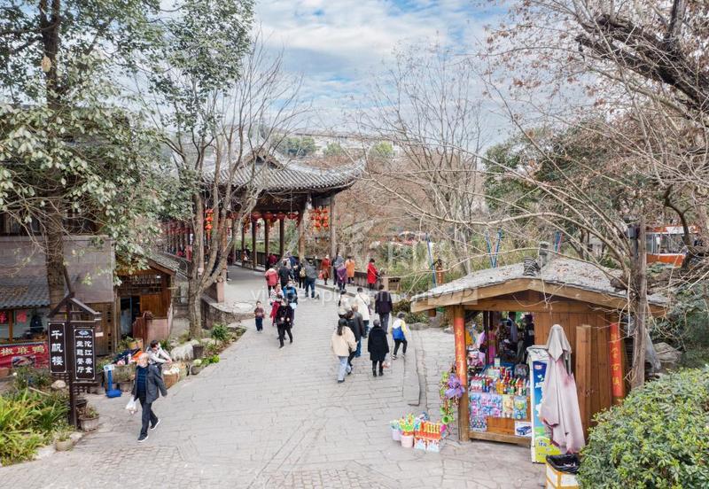 2021年2月17日,拍摄的四川省成都市金堂县五凤溪古镇,优美的环境,吸引大量游人前来观光。 五凤溪古镇,又名五凤镇,位于龙泉山脉中段的沱江之畔,属成都市金堂县,因境内山极屈曲,自北而南而东,一路尖峰拔列,遥望之若冲霄之凤,其峰之尖且高者有五而得名。五条古街亦以金凤、青凤、玉凤、白凤、小凤命名。