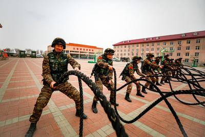 2021年3月18日,武警天津总队机动支队特战大队紧贴实战要求,扎实开展负重冲刺、极限推车、托举原木、搬运弹药箱和翻轮胎等系列极限体能课目训练,进一步强化特战队员的体能极限。