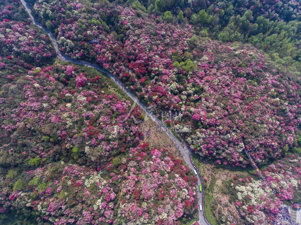 随着气温的回升,位于贵州省毕节市百里杜鹃管理区的120多平方公里的原始杜鹃林迎来最佳赏花期。杜鹃花漫山遍野,一路繁花似锦,游人漫步花间赏花留影,感受春天的气息。