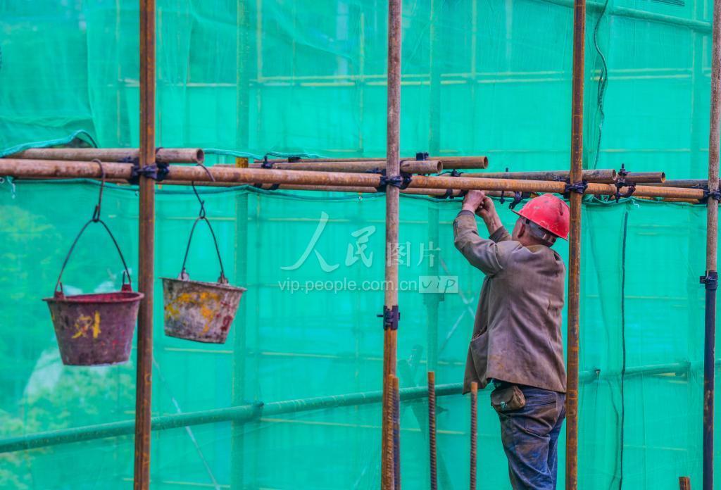 2021年4月8日,在重庆市酉阳土家族苗族自治县实验中学学生宿舍建设项目现场,工人们施工正忙。 一直以来,重庆市酉阳土家族苗族自治县始终把教育工作作为重点工作来抓。为补齐教育基础设施短板,当地政府把把解决该校的住宿难做为重点民生实事推进,于去年启动了项目建设。目前,项目建设推进有序,预计今年9月完工投用。