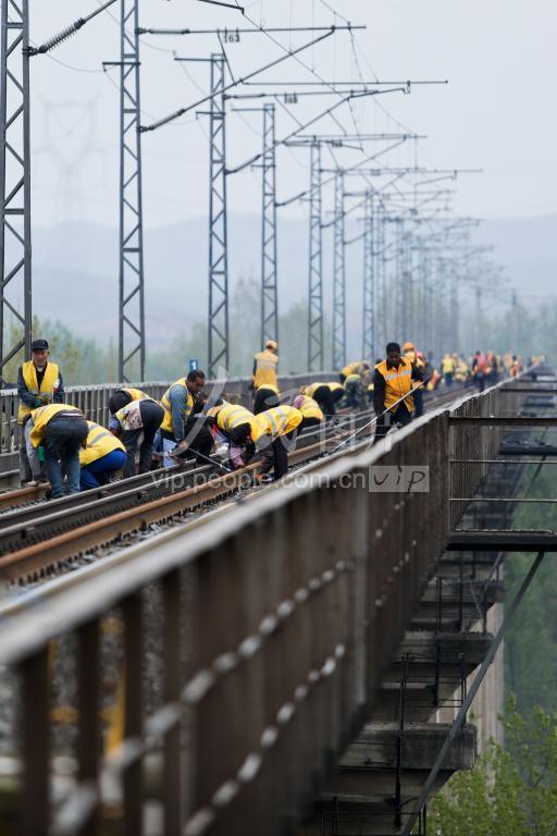 2021年4月8日,南阳工务段施工人员对更换新轨进行调整安装。