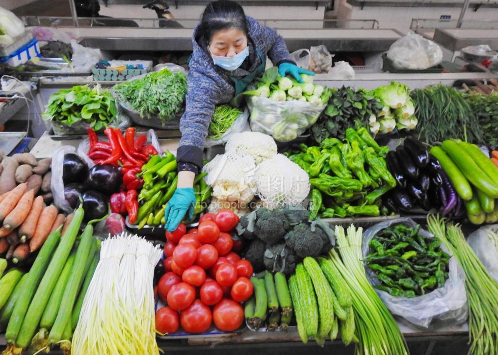 图片说明: 2021年4月9日,江苏省连云港市海州区苍梧生活广场,摊主在整理蔬菜。