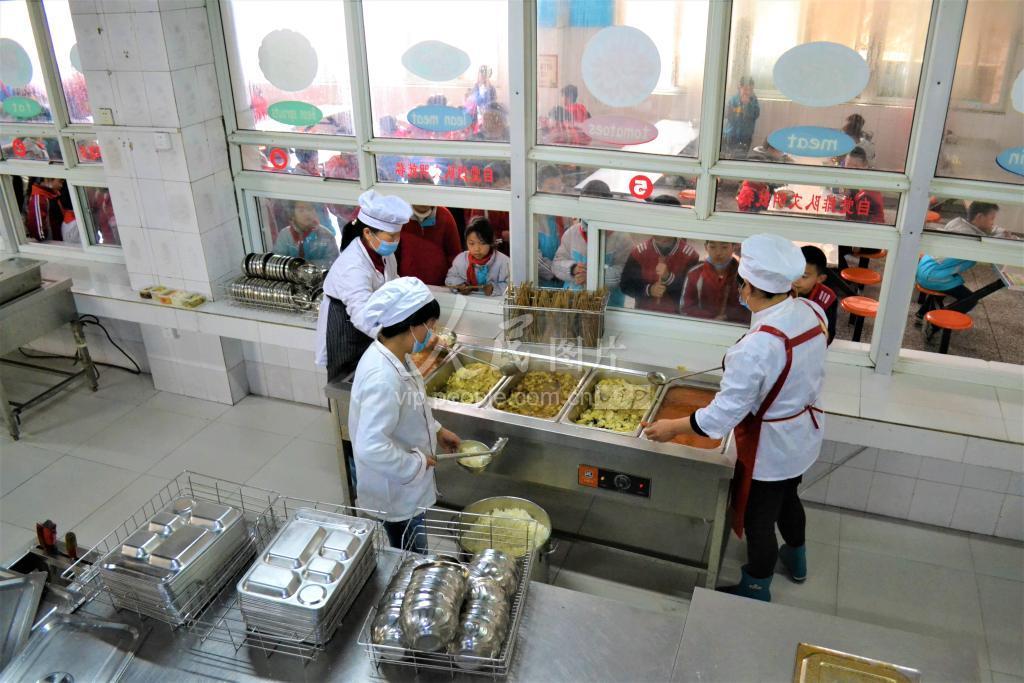 2021年4月9日,湖北省十堰市郧阳区柳陂镇中心小学学生们在食堂里吃“安全放心餐”。 为守护在校学生食品安全,南水北调水源地郧阳区实施“中小学明厨亮灶项目”,为全区141所学校安装了互联网透视明档视频技术设备1600余台(套),让3万余名水源地中小学生都能在学校食堂里吃上“安全放心餐”。目前“明厨亮灶”已实现19个乡镇学校全覆盖。