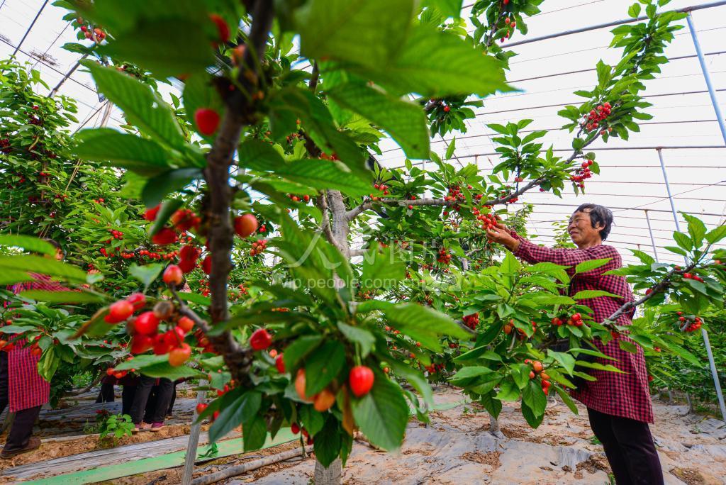 近日,河北省邯郸市鸡泽县玉银种养农民专业合作社大棚里的樱桃喜获丰收,吸引了众多游客前来观光、采摘。近年来,河北省鸡泽县根据当地气候和土壤特点,引导农民采取“专业合作社+基地+农户”的模式种植樱桃,形成樱桃种植、采摘、旅游等产业链,促进当地农民增收致富,助力乡村振兴。