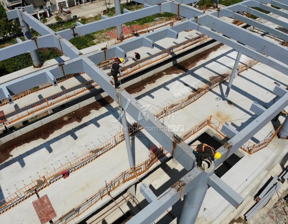 2021年4月9日,在浙江省台州市路桥区路北街道,S1线铁路站房正忙着建设。台州市域铁路S1线是一条通勤铁路,也是台州第一条市域铁路,沿线经过台州市椒江区、路桥区和温岭市。