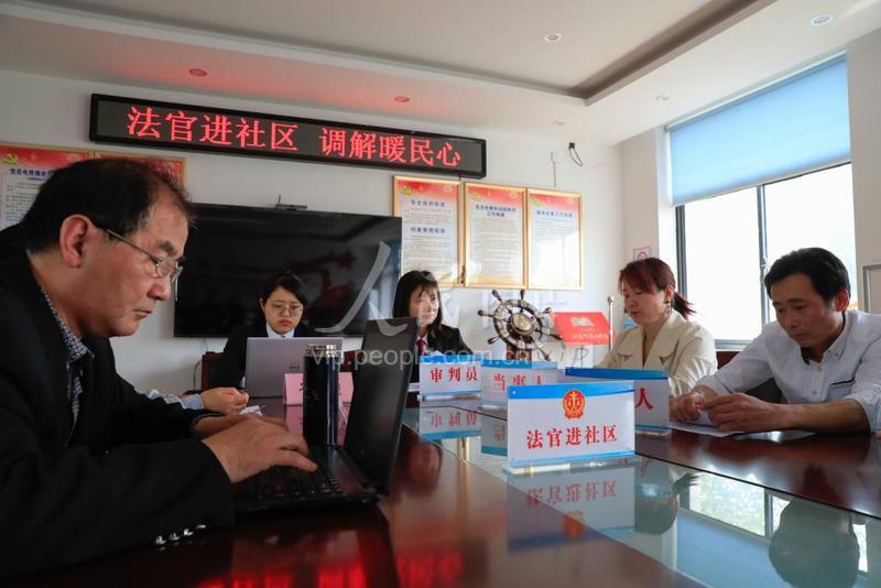 2021年4月30日,安徽合肥市庐阳区人民法院法官正在林店街道金池社区为居民解答法律问题,并进行民事纠纷调解。 据了解,为有效预防化解基层社会矛盾纠纷,畅通司法服务的最后一公里,庐阳区人民法院启动“法官进网格”活动,人民法院法官采取定期和随时需要相结合的办法,利用工作或双休日时间到定点联系的社区开展纠纷调解、法律咨询和普法宣传等服务活动。51名法官与社区签订了对接服务协议,实现“法官进网格”全覆盖。