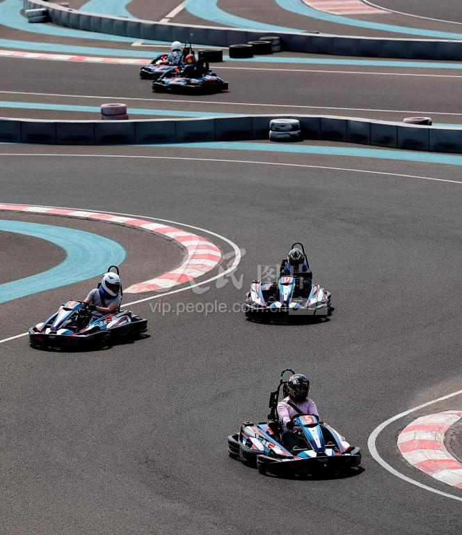 2021年5月4日,游客在秦皇岛首钢赛车谷体验卡丁车竞技。