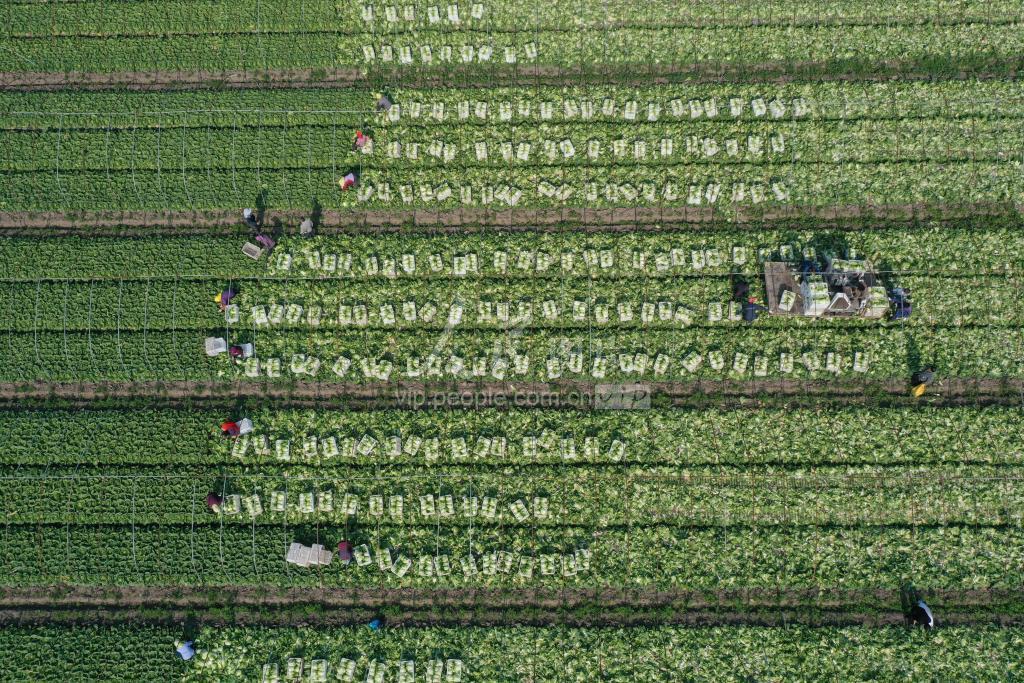 2021年5月4日,在江苏省高邮市临泽镇营北村蔬菜合作社,农民们正在忙着采收大白菜。 立夏将至,江苏省高邮县临泽镇营北村蔬菜合作社种植500多亩大白菜进入了采收期,农民们忙着采收、整理、装运大白菜,供应节日市场,田间地头一派忙碌景象。近年来,该村大力推行规模化、标准化蔬菜种植,通过“合作社+农户+种植采收+加工销售” 订单种植模营销式,助力乡村振兴,农民增收。