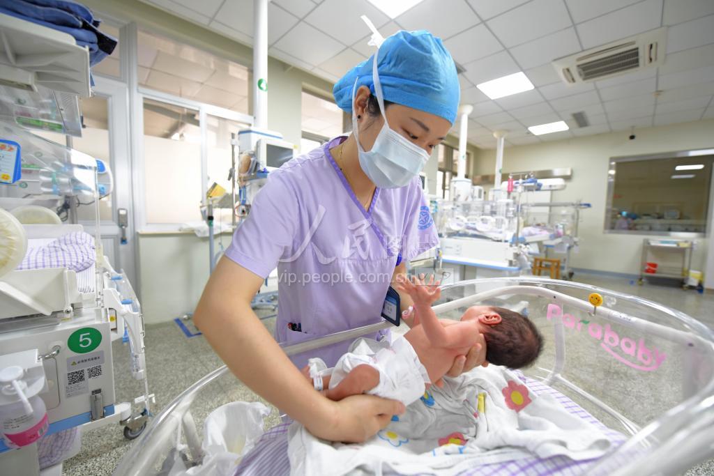 上传时间: 2021-05-04 18:53:41 图片说明: 2021年5月4日,浙江省玉环市人民医院青年护士在照护新生儿。
