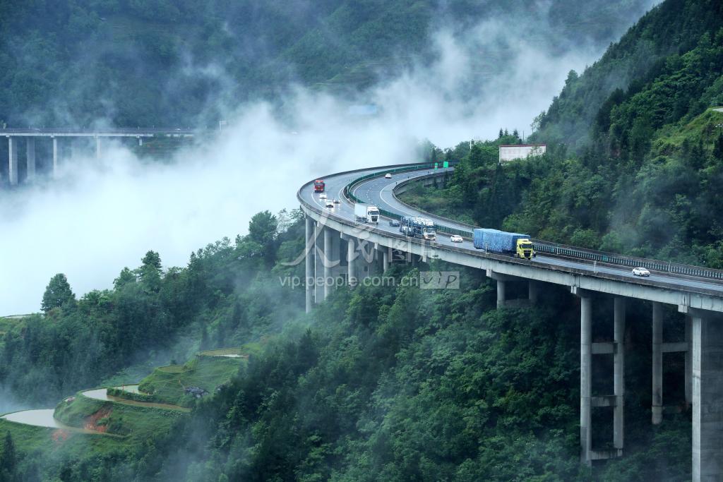 2021年5月4日,贵州从江,车辆行驶在厦蓉高速托苗坳特大桥上。