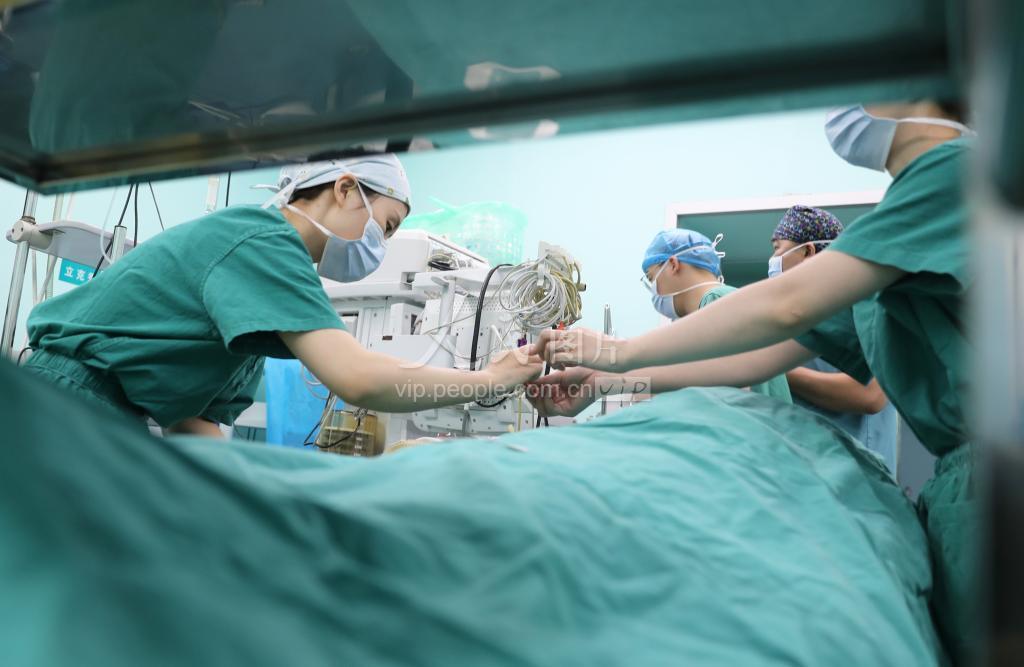 2021年5月11日,湖南省衡阳市南华大学附二医院手术室,陈雪池(左一)在工作中。