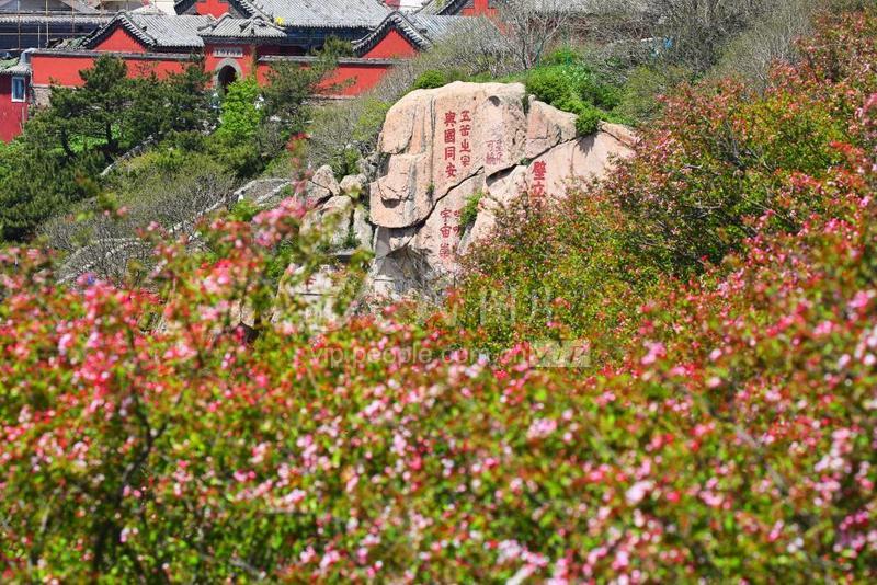 五月是泰山极顶海棠花开的时节,点点粉白色的花朵点缀着满目苍翠,给泰山增添了不少灵动柔美之意。从南天门到天街,再到玉皇顶,海棠花连天怒放,随处可见。