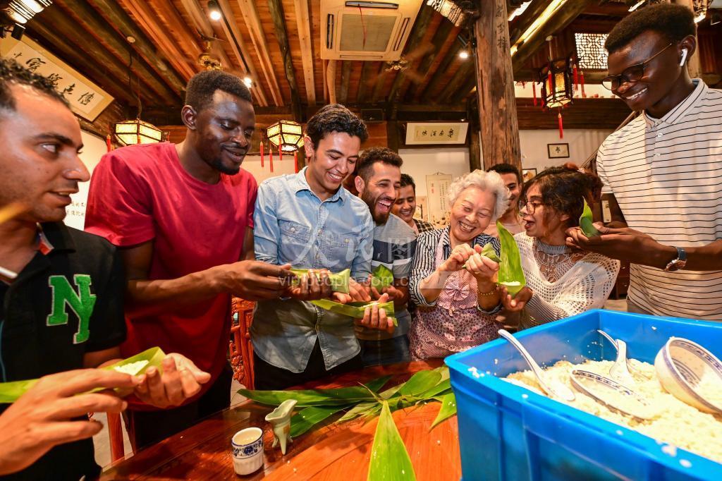 端午节到来之际,浙江省金华市开展“情暖端午 中外同欢”体验中国节活动。邀请40多名在金外籍人士在古色古香的金华古子城包粽子、品金华府酒,学唱道情,体验中国传统端午民俗。