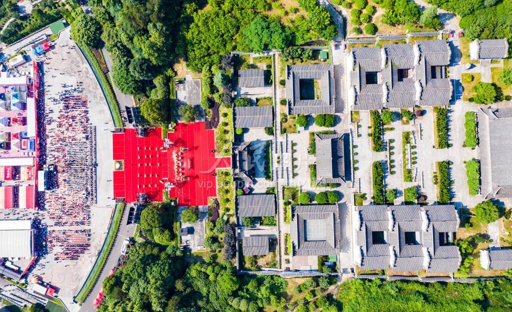 这是2021年6月11日在湖北省宜昌市秭归县屈原祠拍摄的2021屈原故里端午文化节开幕式现场。