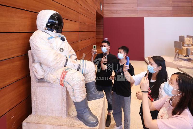 2021年6月19日,观众在国博用手机拍摄焦兴涛2014年创作的雕塑作品《逐梦》。