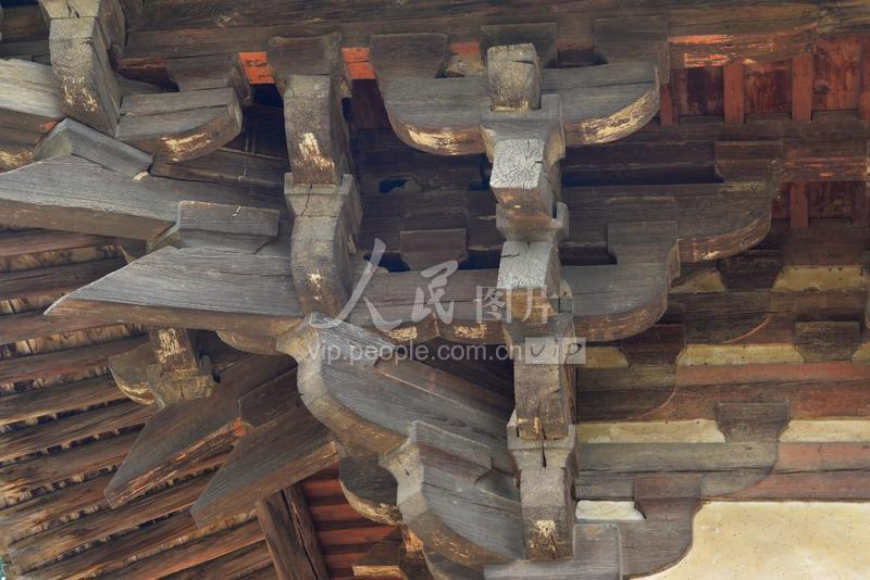 2021年7月7日,山西省五台山佛光寺,青山环抱,古木参天,寺内殿堂屋檐高挑,斗拱硕大,层层相叠,唐代古建跃然入目,气势磅礴。