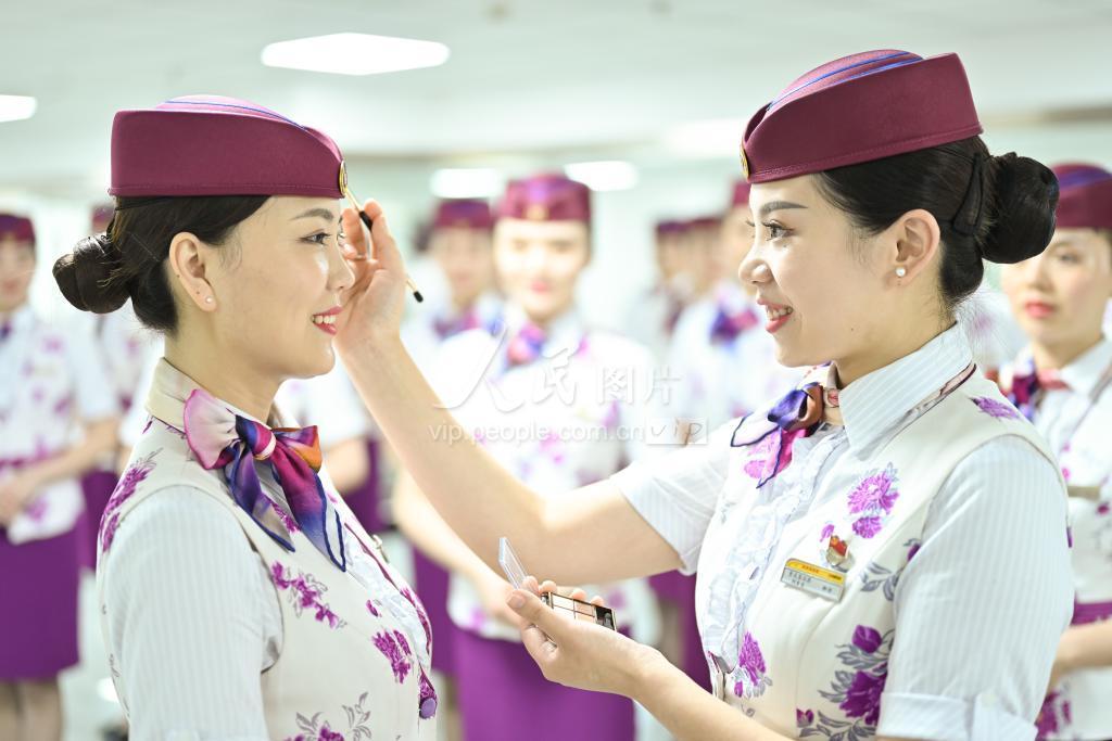 7月14日,成渝城际“复兴号”动车组乘务员进行妆容培训。