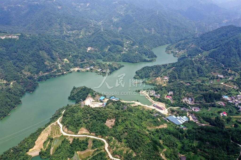 2021年7月19日,长江支流湖北省宜昌市夷陵区乐天溪流域的沙坪电站水库沿岸绿树葱茏,青山绿水风景格外秀美。