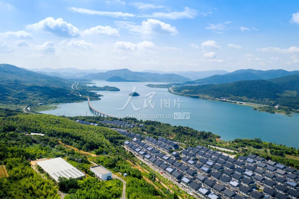 2021年7月22日,浙江省湖州市长兴县小浦镇合溪新村依山傍水,蓝天白云,如美如画。