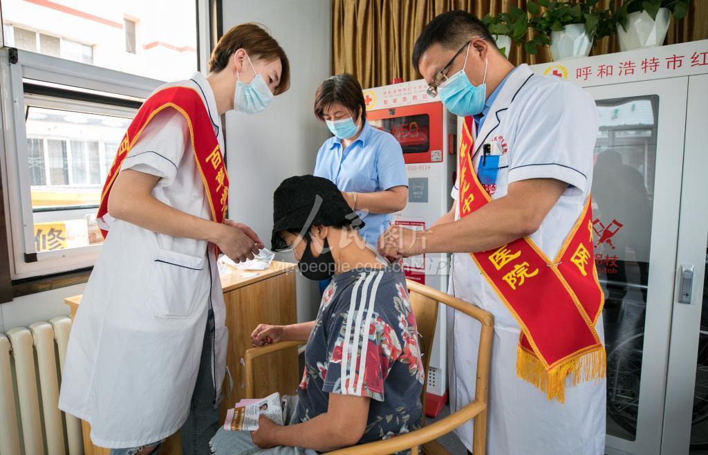 2021年7月22日是农历二十四节气的大暑,许多市民来到内蒙古呼和浩特市玉泉区小召街道建华北街社区医连体为民服务中心贴三伏贴。 入伏以来,内蒙古呼和浩特市玉泉区小召前街街道办事处联合内蒙古百草堂秦氏中蒙医医院开展“青城万人免费贴敷三伏贴”公益活动,为呼和浩特1万名群众、职工、农牧民利用中医贴敷疗法进行“冬病夏治”,以增强人们的抗病能力,达到防治疾病的目的。