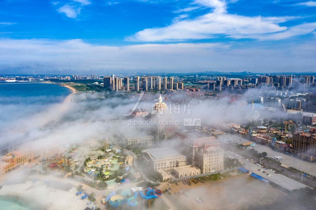 2021年7月22日,山东省烟台市蓬莱区出现唯美的平流雾美景,海边的高层建筑被浓雾缠绕,建筑物在云山雾海中若隐若现,宛如仙境,美不胜收。