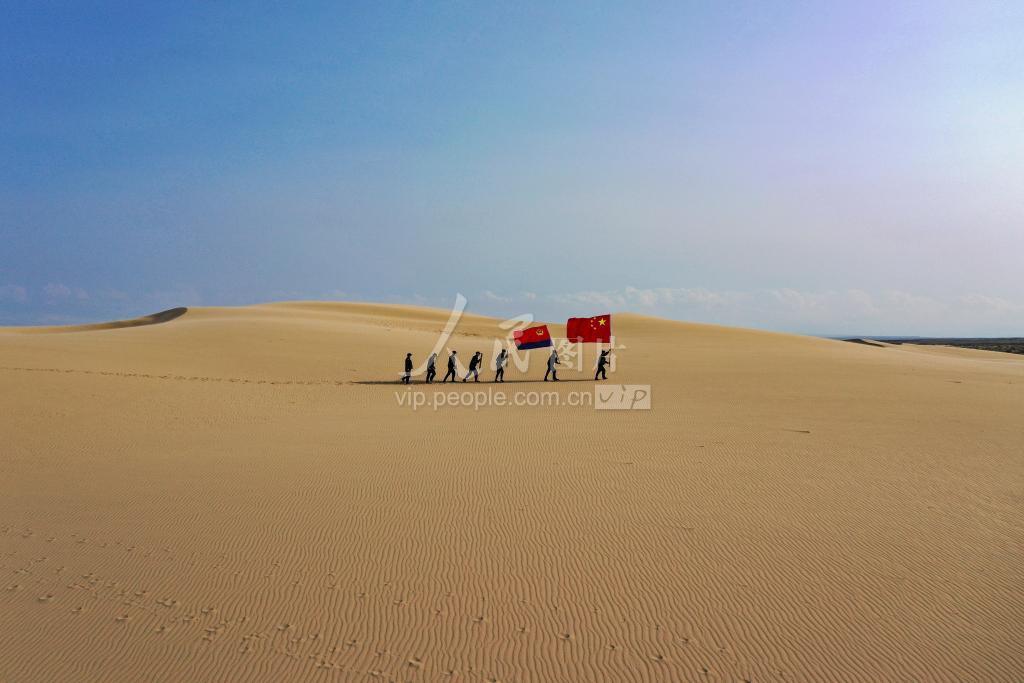 2021年8月6日,驻守在新疆阿勒泰地区哈巴河县加依勒玛边境派出所民警组成沙漠巡护小分队开展一线巡边踏查。
