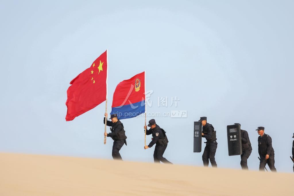 2021年8月6日,驻守在新疆阿勒泰地区哈巴河县加依勒玛边境派出所民警组成沙漠巡护小分队开展一线巡边踏查。