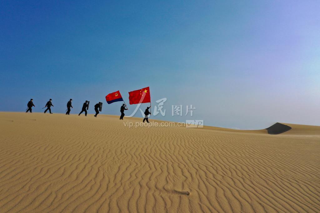 2021年8月6日,驻守在新疆阿勒泰地区哈巴河县加依勒玛边境派出所民警组成沙漠巡护小分队开展一线巡边踏查。