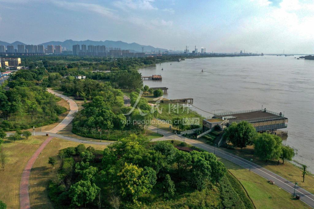 2021年8月30日拍摄的安徽省铜陵市义安区五松镇境内的长江生态廊道。